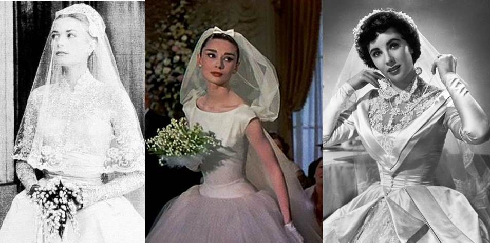 Taking inspiration from Flirty Fleur's "Throwback Thursday", we would like to take a peek into bridal trends of the 1950"s. The first aspect of the 50's that one must take in mind is that World War II was a time of rationing and re-purposing, brides in the 40's made do with what they had on hand and weddings tended to be smaller occasions. In the post-war "wedding boom" that preceded the "baby boom", big dresses and lace were once again attainable and became the wedding style of the time.